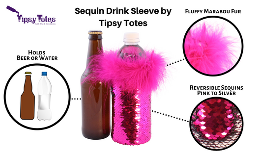 Hot Pink and Silver Sequin Beer Holder for Water or Beer Bottles